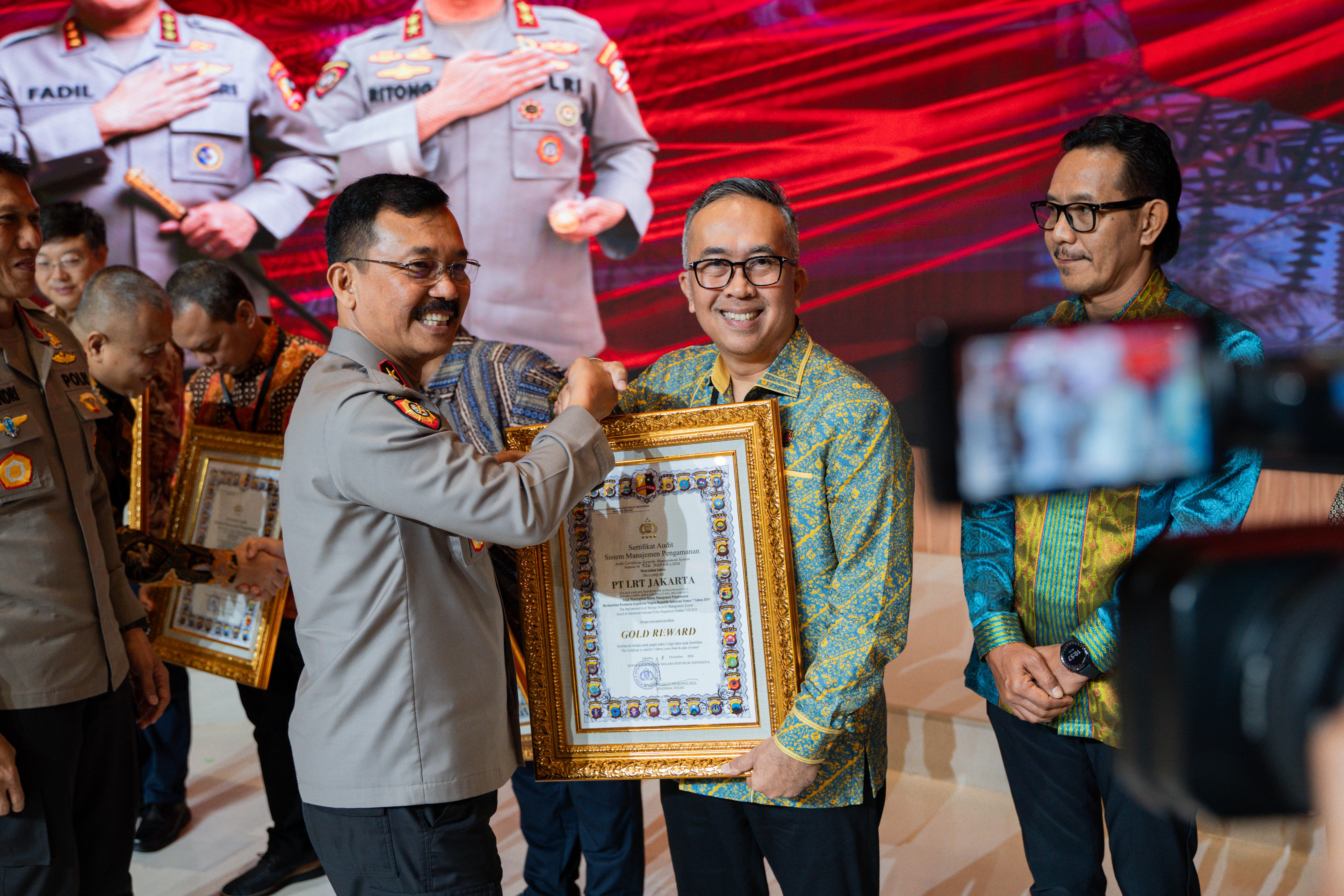 Selasa, 24 Desember 2024 - PT LRT Jakarta telah berhasil menerima Sertifikat Sistem Manajemen Pengamanan (SMP) berbasis Peraturan Kepolisian Negara Republik Indonesia Nomor 7 Tahun 2019 pada Senin, 23 Desember 2024. Acara penyerahan sertifikat ini menjadi