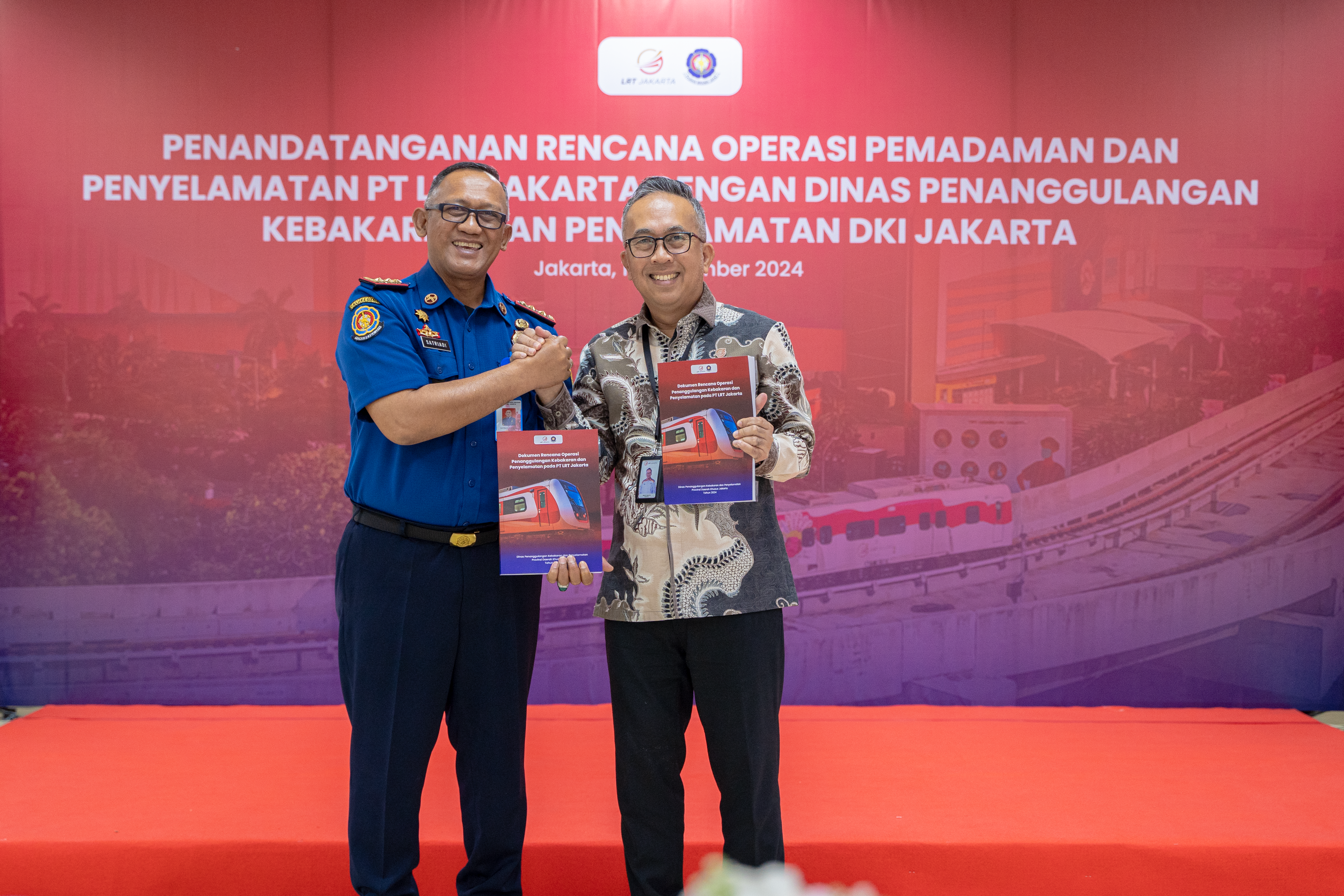 Jumat, 20 Desember 2024 - PT LRT Jakarta bersama dengan Dinas Penanggulangan Kebakaran dan Penyelamatan (Gulkarmat) Provinsi DKI Jakarta menggelar Seremonial Penandatanganan Dokumen Rencana Operasi Penanggulangan Kebakaran dan Penyelamatan di Lingkungan P